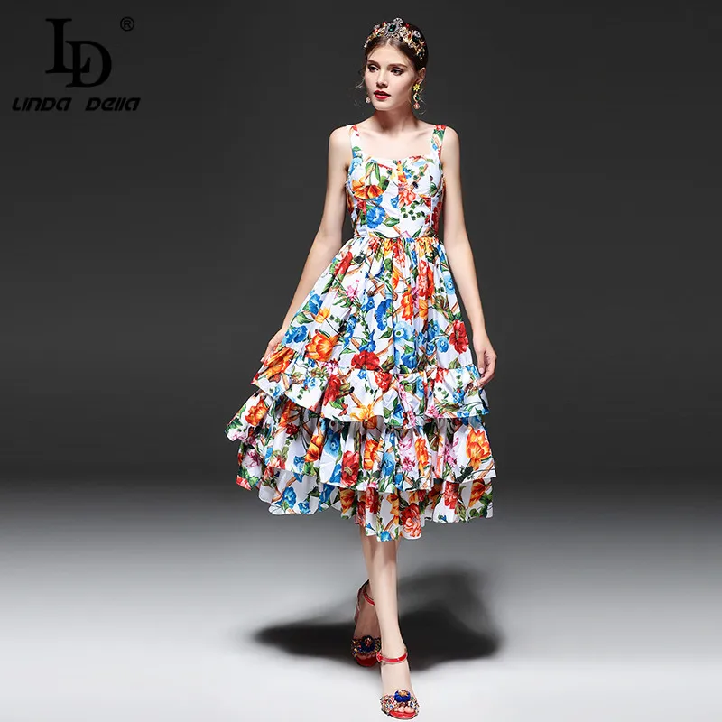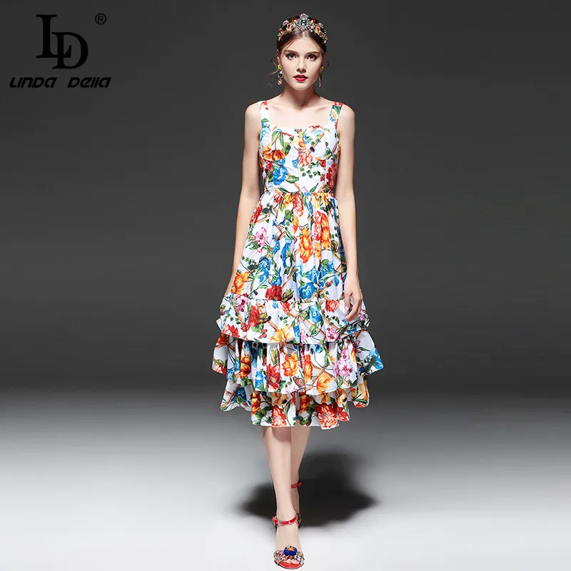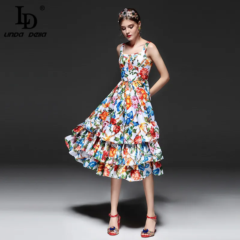 Spaghetti Strap Flounce Ruffled Hem Floral Printed Casual Dresses online latest fashion