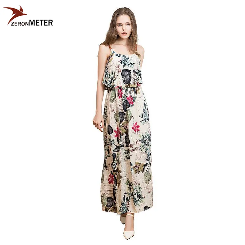 Spaghetti Strap Flounce Ruffled Hem Floral Printed Casual Dresses jeans like gemma